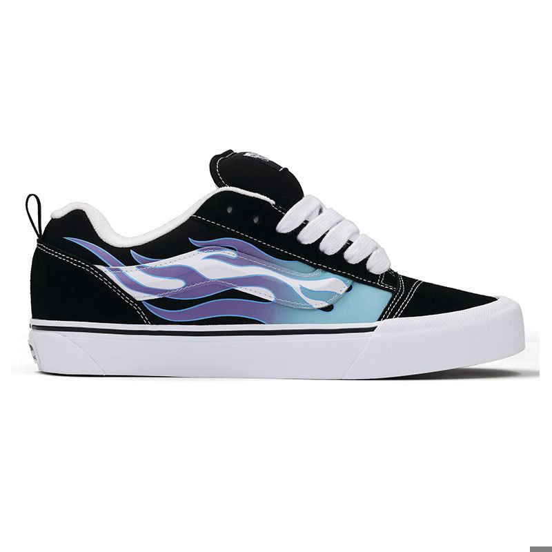 La Knu Skool es un modelo reeditado de los años 90, cuando las zapatillas de skate eran extra hinchadas. Confeccionadas con parte superior de ante y lienzo, este modelo de perfil bajo presenta una gran lengüeta hinchada y un cuello en el tobillo, lo que le da un aspecto exagerado que juega con la Old Skool original. Manteniendo la estética "Off The Wall", nuestro icónico Vans Sidestripe ™ se ha rediseñado como un molde 3D de diamante hinchado, que se suma a la apariencia y sensación general gruesa. La adición de tiradores en el talón ofrece un fácil acceso para entrar y salir. Contiene tiradores en el talón para facilitar la calzada y suela waffle de goma distintiva.