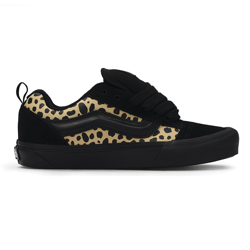 Las zapatillas Vans Knu Skool color negro retoman la estética exagerada de los años 90 con una silueta de perfil bajo completamente confeccionada en suede. Este modelo presenta una lengüeta hinchada, cuello acolchado y el clásico Sidestripe™ reformulado en un llamativo diseño 3D de diamante, resaltando su inspiración en la Old Skool original. Incorporan tiradores en el talón para facilitar el calce y la clásica suela de goma con diseño waffle que refuerza su identidad "Off The Wall". Una propuesta audaz que celebra el volumen y el estilo nostálgico con carácter contemporáneo.