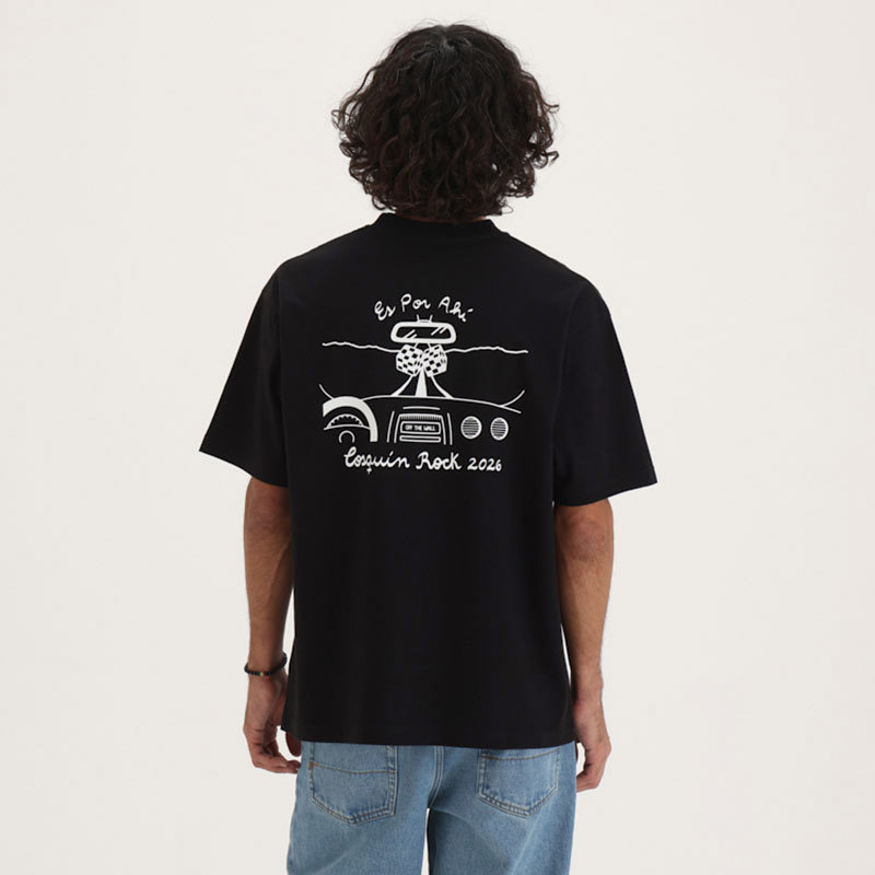 La remera Vans Es por ahí SS Tee color negro presenta escote redondo y calce loose para un estilo relajado. Cuenta con bordado en el frente y estampa en la espalda. Confeccionada en jersey 20/1 100% algodón, ofrece suavidad y comodidad para el uso diario.