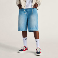La Bermuda Vans LX Jort color denim actualiza el clásico short de jean con una silueta holgada y detalles funcionales. Confeccionado en mezclilla 100% algodón, ofrece una estructura resistente y cómoda para el uso diario. Incorpora cinco bolsillos, incluido uno para monedas, cierre con botones y herrajes metálicos que refuerzan su durabilidad. Su corte por debajo de la rodilla y diseño retro aportan un estilo desenfadado ideal para looks urbanos con personalidad.