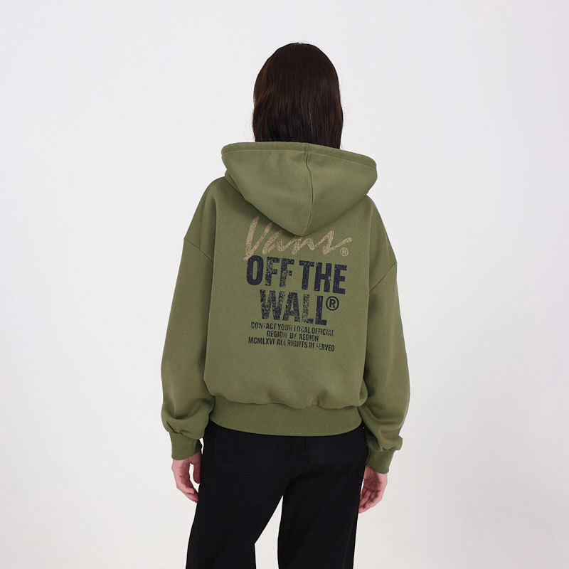 El buzo Ladywall Retro Zip Hoodie color verde de Vans ofrece una combinación ideal de estilo urbano y confort. Confeccionado en felpa suave, presenta cierre frontal, capucha con cordones y bolsillo tipo canguro para mayor funcionalidad. El diseño se realza con el icónico gráfico Vans Off The Wall en el frente y la espalda, evocando una estética retro distintiva. Su silueta relajada, junto con los puños y cintura elásticos, aseguran un calce cómodo y versátil para el uso diario.