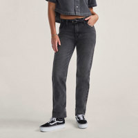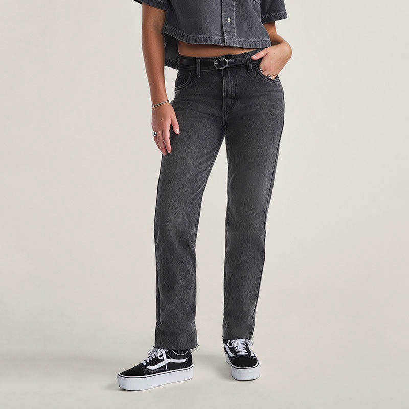 El modelo Annabelle Straight Leg Pant color negro ofrece un diseño de pierna recta y corte holgado, confeccionado en mezclilla pesada de 14 oz. para máxima resistencia y comodidad. Inspirado en la estética del skate, incorpora cinturón con cordones, bolsillos delanteros con bolsillo para monedas y bolsillos traseros de ribete, combinando funcionalidad y estilo urbano. Hecho en 100% algodón BCI.