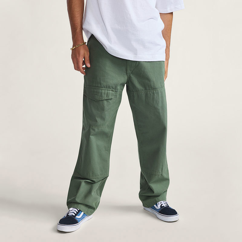 El pantalón Vans Skate Loose Atiba Haze Cargo color Verde Pine Forest fusiona estilo utilitario con el legado del skate en una silueta holgada que prioriza la comodidad. Fabricado en tejido resistente con estampado camuflado, cuenta con múltiples bolsillos cargo funcionales y detalles gráficos exclusivos que destacan su colaboración con Atiba Haze. La etiqueta distintiva y el corte amplio refuerzan su estética urbana, convirtiéndolo en una prenda versátil ideal para el día a día o sesiones sobre la tabla.