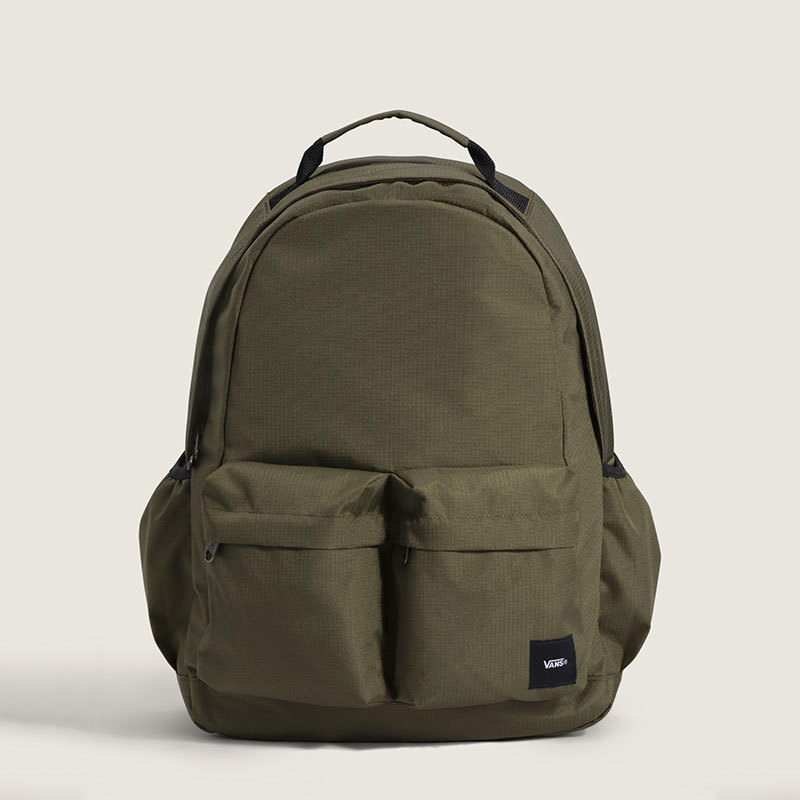 Mochila VANS original Off The Wall Backpack verde oliva, diseñada para acompañarte en la rutina diaria, desde la facultad hasta los traslados de todos los días. Su exterior de nailon con revestimiento de poliuretano ayuda a proteger el contenido frente a las inclemencias del tiempo, mientras que el interior con forro de poliéster revestido suma resistencia y practicidad para el uso cotidiano. Cuenta con un compartimento acolchado para notebook compatible con la mayoría de los equipos de hasta 15 pulgadas, ideal para llevar tu tecnología más segura. También incorpora un bolsillo frontal exterior con cierre para tener a mano lo esencial, un bolsillo interno de malla con cierre para guardar objetos pequeños y bolsillos laterales elásticos para botellas de agua, que facilitan la hidratación en cualquier momento del día. Las correas de hombro ergonómicas y acolchadas aportan mayor comodidad durante jornadas largas, y el asa superior permite agarrarla y transportarla con facilidad. Su capacidad de 23,5 litros la convierte en una opción funcional para clases, trabajo y desplazamientos diarios. Medidas: 43,2 x 33 x 15,2 cm.