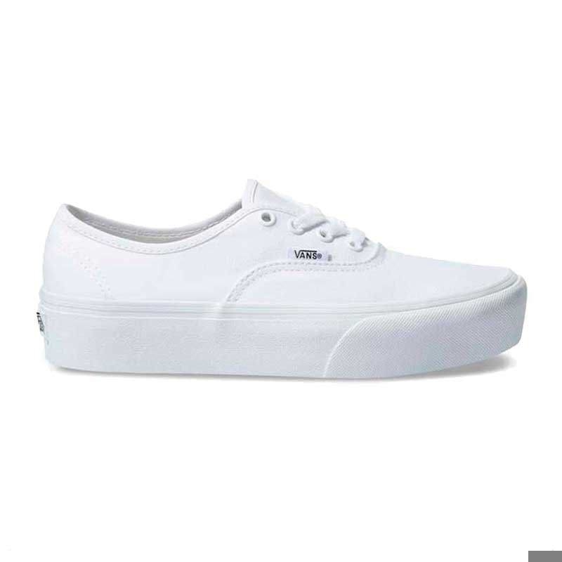 Vans Authentic Platform. Un nuevo giro al clásico modelo Authentic, la legendaria zapatilla de Vans. Es una zapatilla de corte bajo acordonada, su capellada simple de canvas y la suela de caucho con plataforma y original Vans Wafflesole.