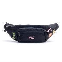 La riñonera negra Street Ready de Vans ofrece todo el espacio que necesitas con un gran compartimento con cierre, dos compartimentos más pequeños con cierre en el frente y un bolsillo oculto con cierre en la manga en la parte posterior. La decoración de esta riñonera es un logotipo de Vans serigrafiado en la parte delantera y gráficos bordados y serigrafiados de un hongo, flores, un conejito y un signo de la paz a los lados