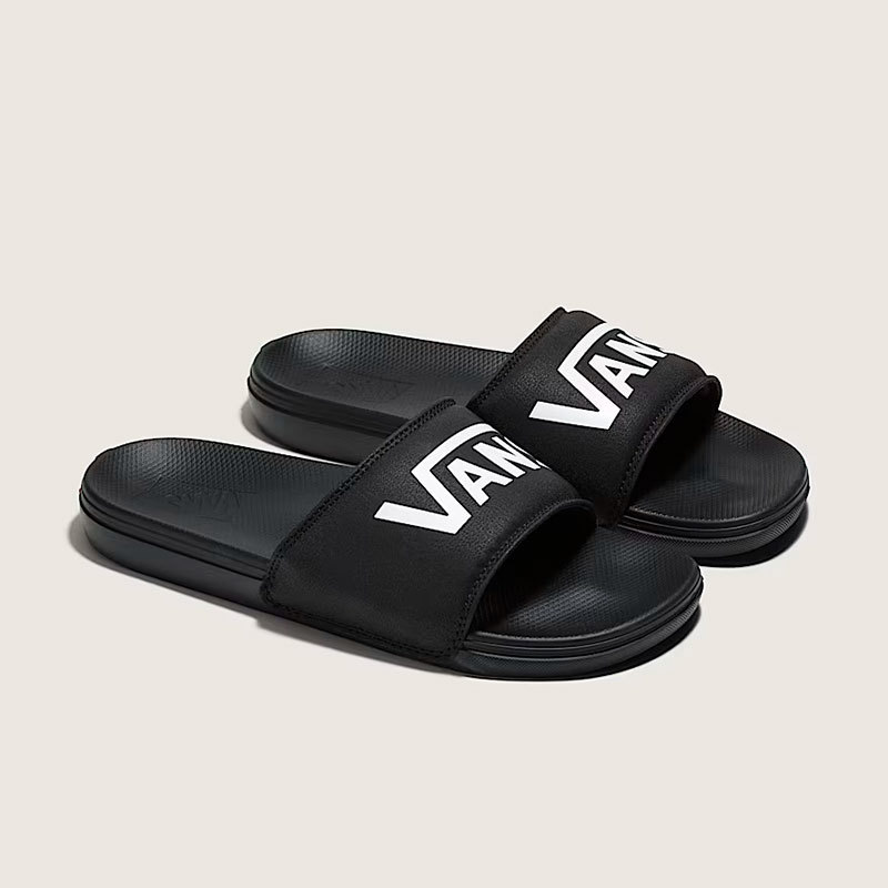 Las ojotas Vans W La Costa Slide-On en color negro combinan estilo y comodidad con un diseño inspirado en las clásicas suelas vulcanizadas de Vans. Su tira de nobuk sintético con goma suave y forro de tejido elástico asegura un ajuste perfecto y confortable. Incorporan una suela waffle UltraCush™ ligera, flexible y duradera, ideal para el uso diario. Fabricadas con tintas y pegamentos al agua, destacan por su diseño ecológico y el icónico logotipo de Vans. Disponibles en talles equivalentes: 3.5/34-35, 5.5/36-37 y 7.5/38-39.